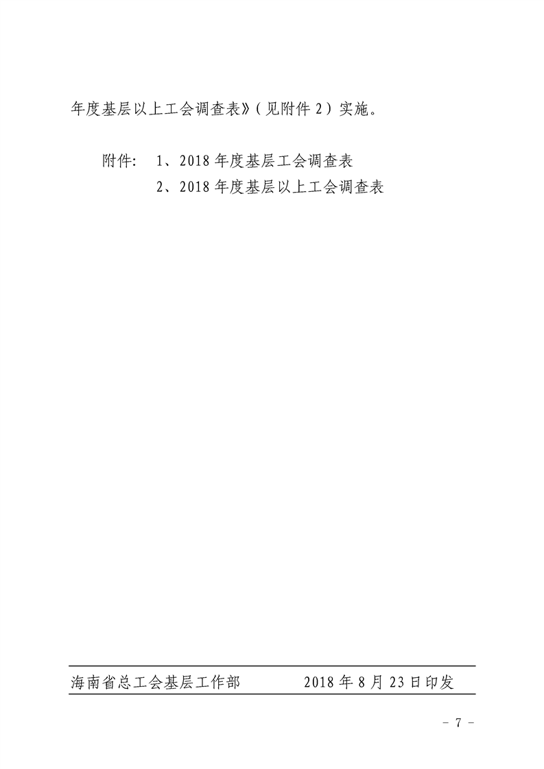 海南省总工会办公室关于印发《2018年度全省工会统计年报调查方案》的通知(琼工办发〔2018〕131号)