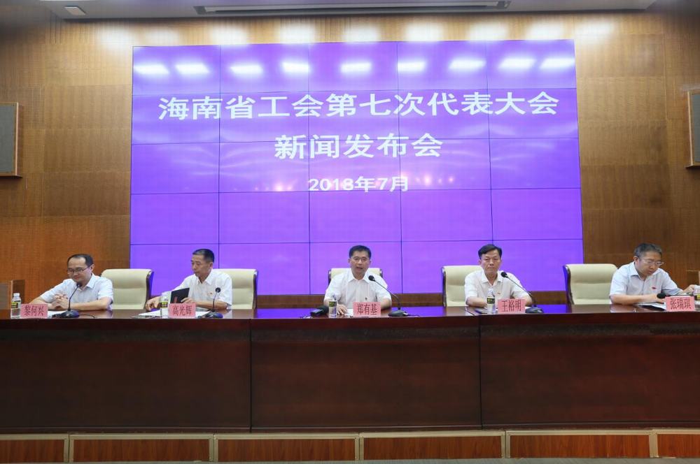 712日上午,海南省工会第七次代表大会新闻发布会在省博物馆举行。省总工会党组成员、副主席郑有基宣读发布词,省总工会副巡视员高光辉主持发布会。