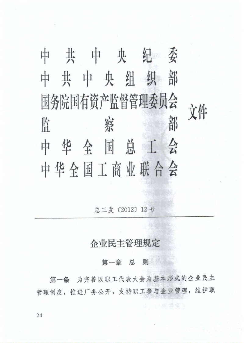 六部委转发《企业民主管理规定》(总工发[2012]12号)
