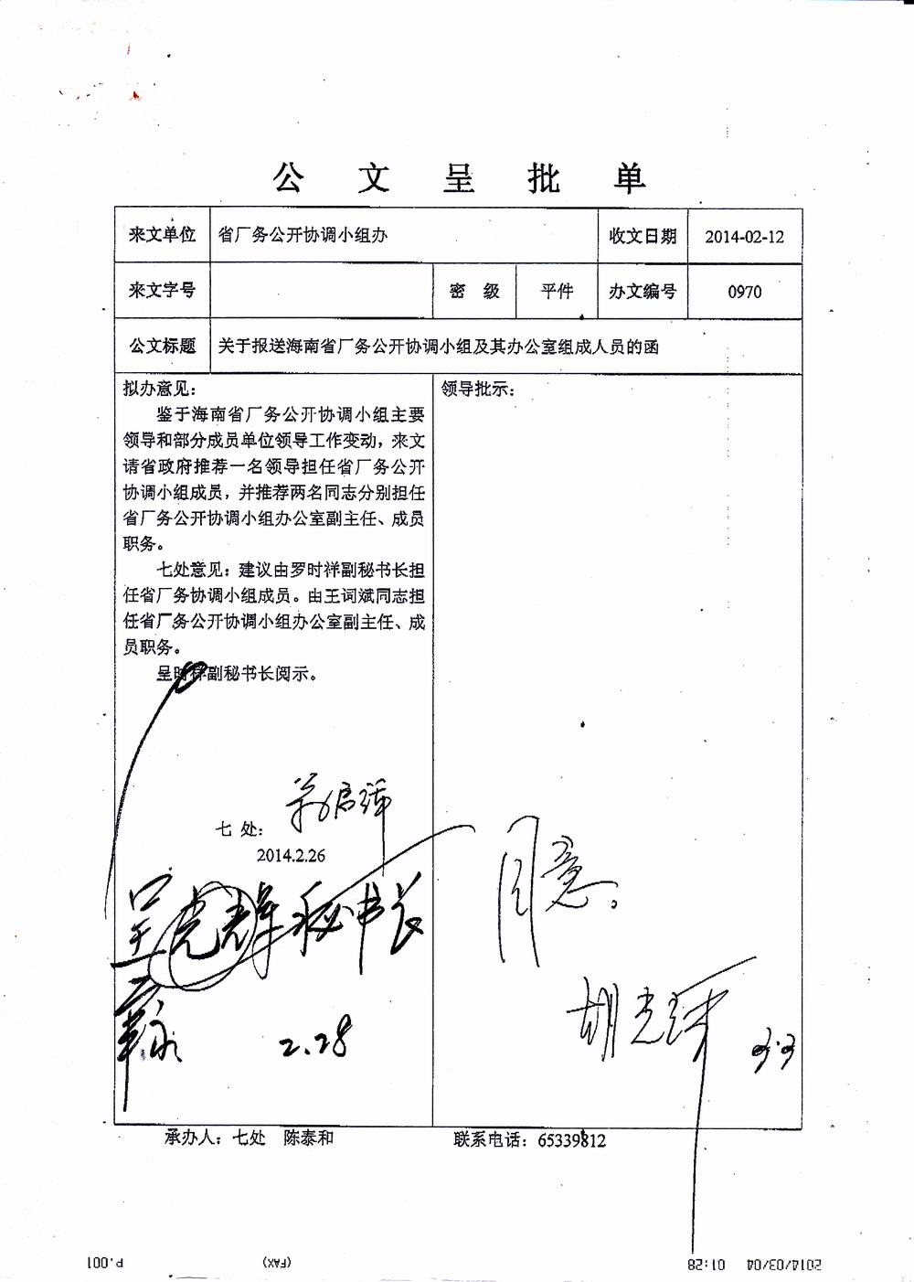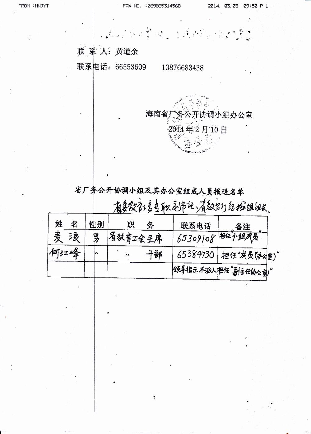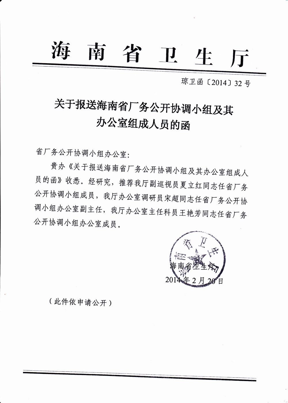 海南省厂务公开协调小组及其办公室组成人员报送名单,复函(省委办公厅、教育厅、工商联、人社厅、国资委、卫生厅、组织部)