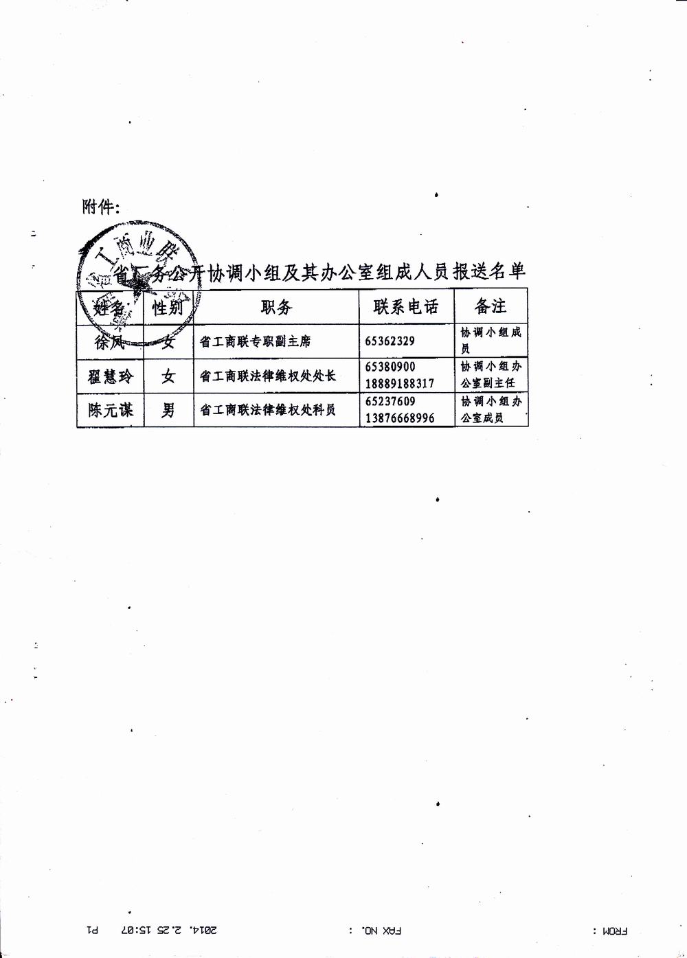 海南省总工会文件,关于我省厂务公开协调小组单位组成的说明及附件(琼厂开组办呈【2014】1号)