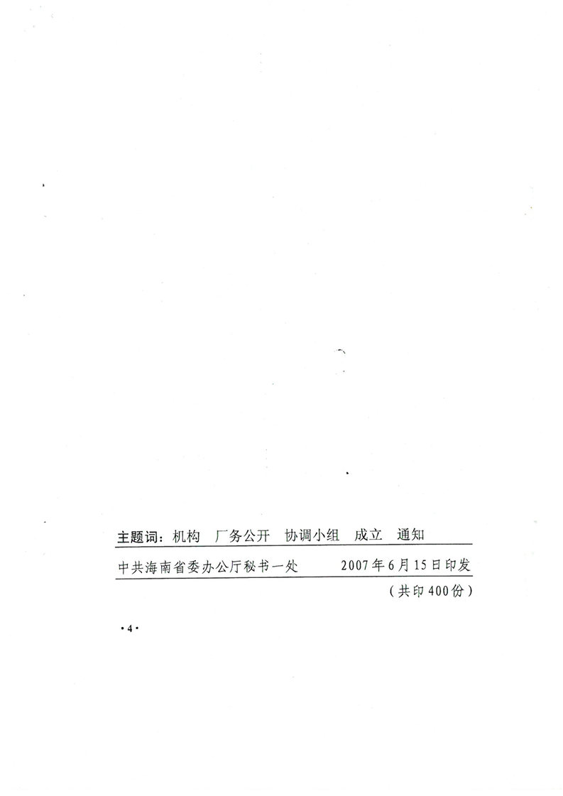 海南省委办公厅、政府办公厅关于成立海南省厂务公开协调小组的通知(省委办〔2007〕9号)