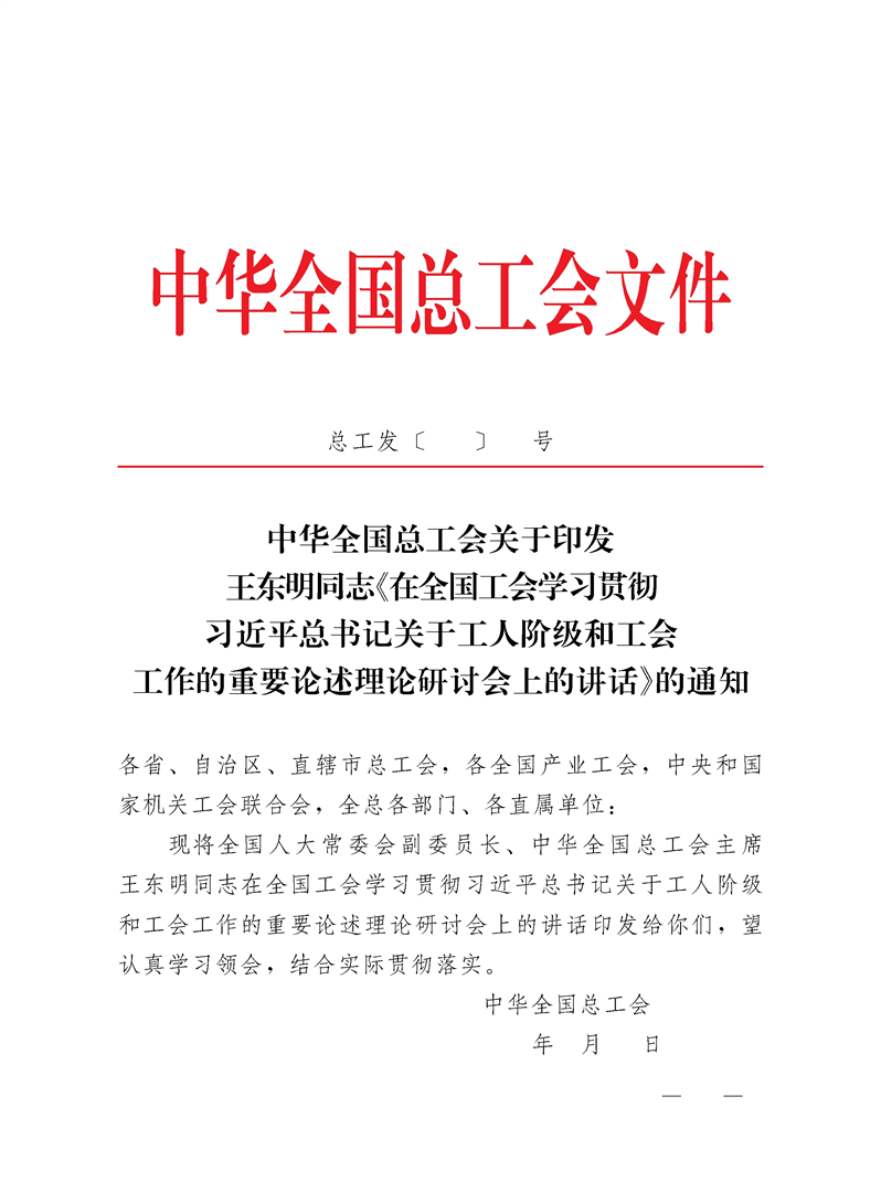 王东明同志在全国工会学习贯彻习近平总书记关于工人阶级和工会工作的重要论述理论研讨会上的讲话(总工发〔2019〕12号)