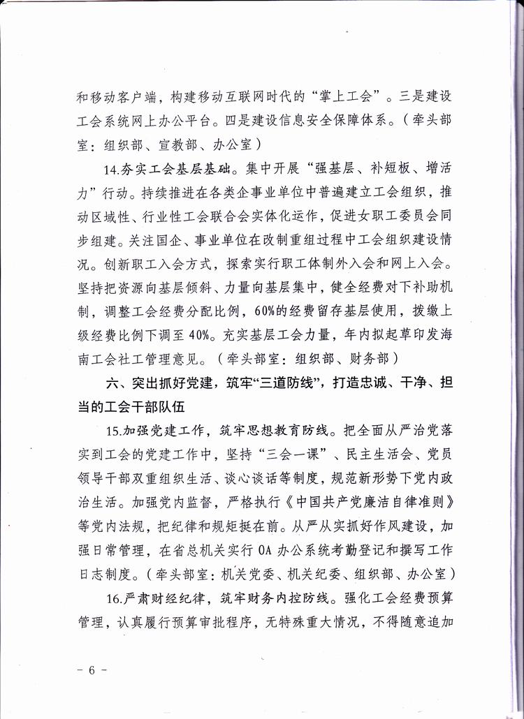 海南省总工会六届八次全委(扩大)会议材料之四——2017年工作要点